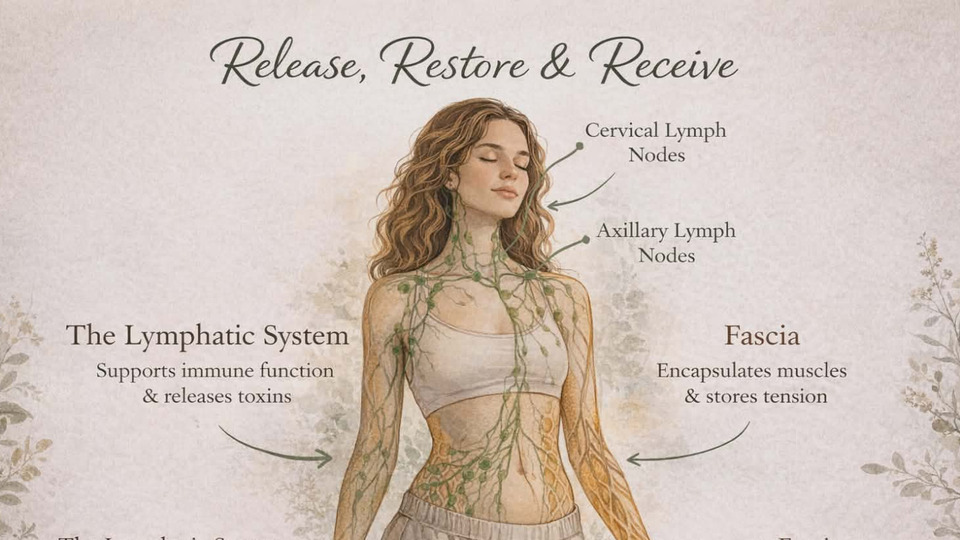 In this gentle, experiential workshop we explore the powerful connection between the lymphatic system, fascia, and the nervous system. You’ll be led through fascia-release yoga, self-lymphatic and facial drainage, and grounding meditation to support flow, emotional release, and deep relaxation. Through a science-meets-soul lens, you’ll learn how stress and stored tension impact the body — and how softening creates space for healing and renewal. Designed to be accessible for all bodies, this nourishing experience invites you to rest, release what you’ve been carrying, and reconnect with your body’s innate wisdom.